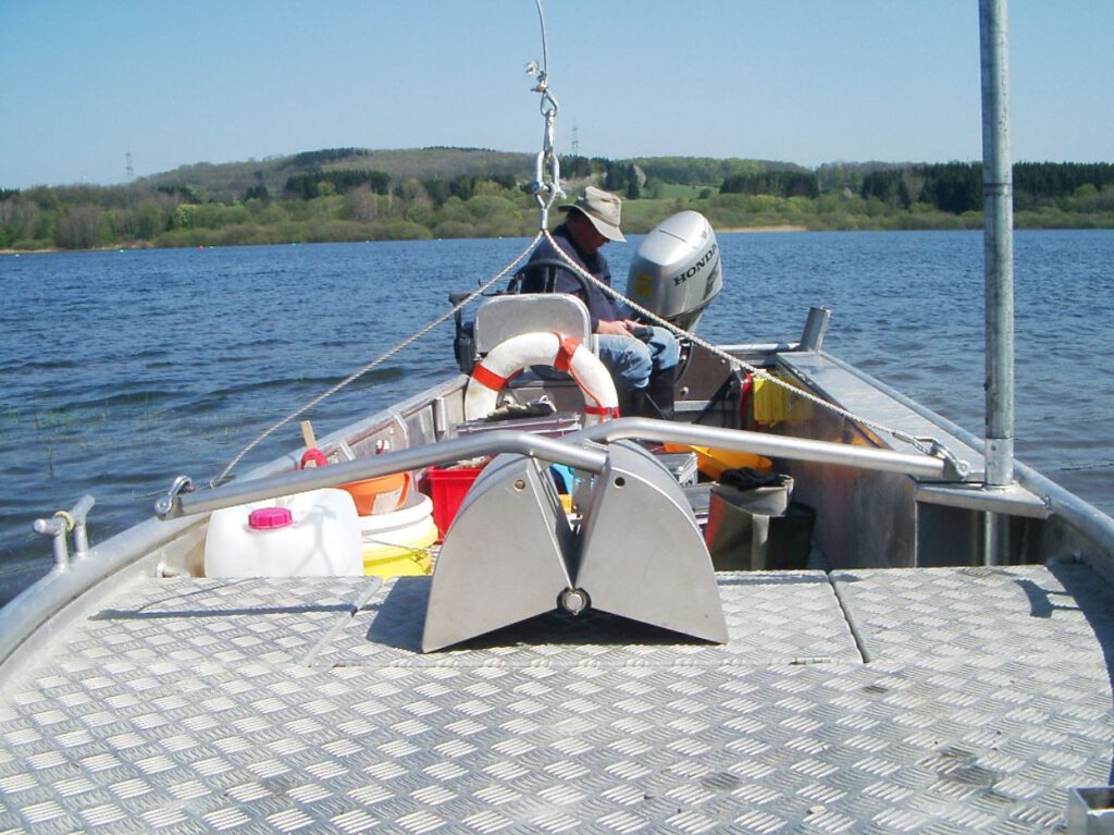 Wir bearbeiten die biologischen Qualitätskomponenten im Sinne der WRRL, außer Plankton, und messen verschiedene chemische und physikalisch Parameter vor Ort. Wir verfügen über verschiedenste Messgeräte und Hilfsmittel bis hin zur schwimmenden Messstation mit Mobilfunkübertragung (z.B. von WTW, Hanna, Merck). Je nach Bedarf können wir Proben vom Ufer, watend, vom Boot oder tauchend nehmen bzw. entsprechende Datenlogger für Dauermessungen ausbringen. Mittels Ruttner-Schöpfer können vom Boot Wasserproben aus einer bestimmten Tiefe genommen werden. Für einige Parameter verfügen wir über Spezialsondern, sodass vom Boot Tiefenprofile schnell und kosteneffizient erstellt werden können. Zur Analyse spezieller Parameter arbeiten wir mit akkreditierten Laboren. Wir haben je nach Gewässer und Fragestellung für Probenahmen und Messungen schnell einsetzbare Kleinstboote bis hin zum stark motorisierten 9 m Nachen, sowie bei Bedarf mehrere Taucher.